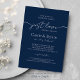 Modern Elegant Just Love Blue Script Wedding Invitation. This chic elegant wedding invitation features modern script and typography in navy blue reads, "Nothing Fancy, just love" with a simple monogram on the back.