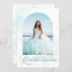 This Quinceañera invitation showcases gentle light blue watercolor splashes on a clean white backdrop. Your photo is elegantly presented in a graceful arch shape, complemented by delicate calligraphy script for a modern, elegant, and timeless look.