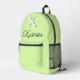 A personalised monogram backpack designed in a modern elegant style. This elegant Menthol backpack features a bold white initial 'X' with a black shadow and a customisable name in black script font. Perfect for adding a touch of sophistication and personalisation to your everyday style. Ideal for school, work, or casual outings, this backpack combines functionality with a chic design that stands out.