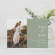 This is a Modern Elegant Minimalist Sage Green Custom Picture Photo Wedding Save The Date!