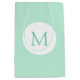 Modern Elegant Mint Green Colour Monogram Template Medium Gift Bag