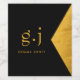Black gold wine labels for home or business, featuring a simple clean modern gold minimalist monogram on black, with simple lower case serif typography initials and a faux foil gold triangle accent shape. A punctuation mark (period) divides the first and last initial as a simple design element that defines this typography style as modern and clean. Your name in uppercase serif type. Simple, clean and modern.