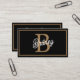 Modern Elegant Monogram Name Black Gold Script Business Card