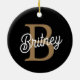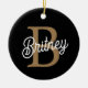 Modern Elegant Monogram Name Black Gold Script Ceramic Ornament