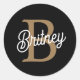 Modern Elegant Monogram Name Black Gold Script Classic Round Sticker