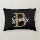 Modern Elegant Monogram Name Black Gold Script Decorative Cushion