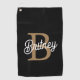 Modern Elegant Monogram Name Black Gold Script Golf Towel