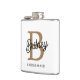 Modern Elegant Monogram Name Black Gold Script Hip Flask