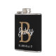 Modern Elegant Monogram Name Black Gold Script Hip Flask