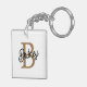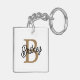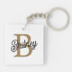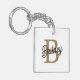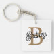 Modern Elegant Monogram Name Black Gold Script Key Ring