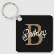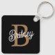 Modern Elegant Monogram Name Black Gold Script Key Ring