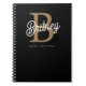 Modern Elegant Monogram Name Black Gold Script Notebook