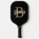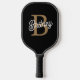 Modern Elegant Monogram Name Black Gold Script Pickleball Paddle