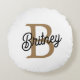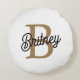 Modern Elegant Monogram Name Black Gold Script Round Cushion