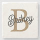 Modern Elegant Monogram Name Black Gold Script Stone Coaster