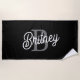 Modern Elegant Monogram Name Black Grey Script Beach Towel