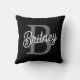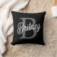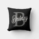 Modern Elegant Monogram Name Black Grey Script Cushion