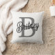 Modern Elegant Monogram Name Black Grey Script Cushion