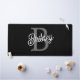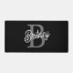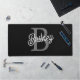 Modern Elegant Monogram Name Black Grey Script Desk Mat