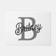 Modern Elegant Monogram Name Black Grey Script Doormat