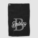 Modern Elegant Monogram Name Black Grey Script Golf Towel