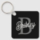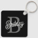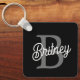 Modern Elegant Monogram Name Black Grey Script Key Ring