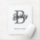 Modern Elegant Monogram Name Black Grey Script Mouse Pad