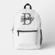 Modern Elegant Monogram Name Black Grey Script Printed Backpack