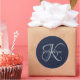Modern Elegant Monogram Script Navy Blue Classic Round Sticker