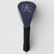 Modern Elegant Monogram Script Navy Blue Golf Head Cover
