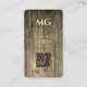 Modern Elegant Monogram Wood Woodworking QR Business Card