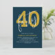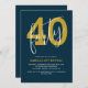 Modern Elegant Navy Blue Gold 40th Birthday Invitation