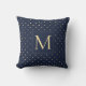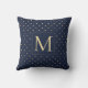 Modern Elegant Navy Blue Gold Polka Dots Monogram Cushion