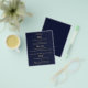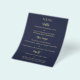 Modern Elegant Navy Blue Gold Wedding Menu Card