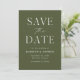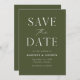 Announce your upcoming nuptials in style with our elegant, modern QR code save the date card. The non-photo save the date features "Save the Date" in white serif and script fonts with an olive green background. Personalise the front of the save the date card by adding your names, wedding date, wedding location, and other wedding details. The minimal save the date card reverses to feature your custom QR code with wedding website and custom text. Perfect save the date for both modern formal and casual weddings!