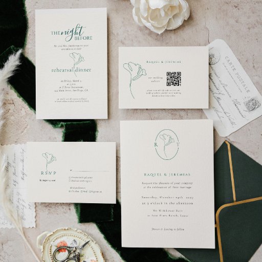 Modern Elegant Outlined Botanical Emerald RSVP Card