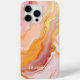 Modern Elegant Peach Gold Marble Personalised Name Case-Mate iPhone Case