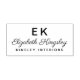 Stylish professional self inking rubber stamp design that is perfect for a small business owner or employee features the first and last name initials, the name in modern calligraphy script with classic and elegant text that can be personalised with a job title or business name.