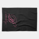 Modern, minimalist black and hot pink custom personalised name and monogrammed kitchen towel. It features a monogram initial in serif style font and a pretty handwritten first name text template in hot pink, white colour on black background. Great feminine, girly personalised gift. If you need help or matching items, please contact to me.