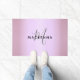 Modern Elegant Pink Girly Monogram Script Name Doormat. Chic design that you can personalise with your monogram name and initial. Perfect for hair salon, nail salon decor, or any health, wellness, and beauty spa business. Makes an excellent gift for her, gift for family, fall decor gifts, home decor for women, sweet 16 birthday gift or a best friend birthday gift.