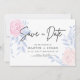 Modern Elegant Pink Rose Blue Minimalist Wedding Save The Date