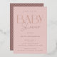 Elegant and modern gold foil baby shower invitation card in soft pink with a striped backer in a matching darker pink. The perfect pick for a girl baby shower!