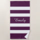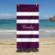 Personalised Modern Elegant Purple Stripes Pattern Name Beach Towel.