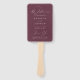 Elegant wedding program hand fan featuring a modern white calligraphy script with a purple background to create a design that is perfect for weddings of all styles and seasons. Personalise the front of the modern wedding program with your names, wedding date and location, and custom thank you message. The wedding program fan reverses to display the order of service and a list of your wedding party. The purple wedding program hand fan was created to coordinate with our Modern Elegance wedding collection.