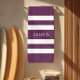 Modern Elegant Purple White Stripes Pattern Name Beach Towel