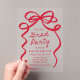 Celebrate your graduate in style with this Modern Elegant Red Bow acrylic graduation party invitation! Featuring a bold red bow elegantly framing the party details on a transparent acrylic background, this invitation exudes sophistication and charm. The red script adds a modern touch, making it perfect for high school and college graduation celebrations. Make your special day unforgettable with this chic and contemporary invitation!