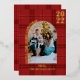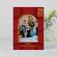 This modern and elegant Christmas holiday card is perfect for the winter season. It features a red, burgundy, and real gold foil tartan plaid pattern with a photo of the family with an arch-shaped gold foil frame. It's country chic, stylish, and rustic; the perfect design to send to family and friends.