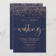 Modern elegant simple rose gold foil confetti and navy blue wedding script
