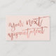Modern elegant rose gold script typography on pastel blush pinkwith your next appointment written in a modern and stylish script calligraphy. Perfect for beauty salon, hair stylist and makeup artists.