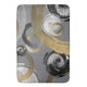 This abstract rough rings and swirled circles design has a modern elegant flair. Created in graphic software, beginning with photographs I took of the upside down lid of a can of paint, then adding graphic rough rings to the design. The colour palette is black, white, grey and a dirty gold colour (No metallic inks, all created digitally with gradient colours).